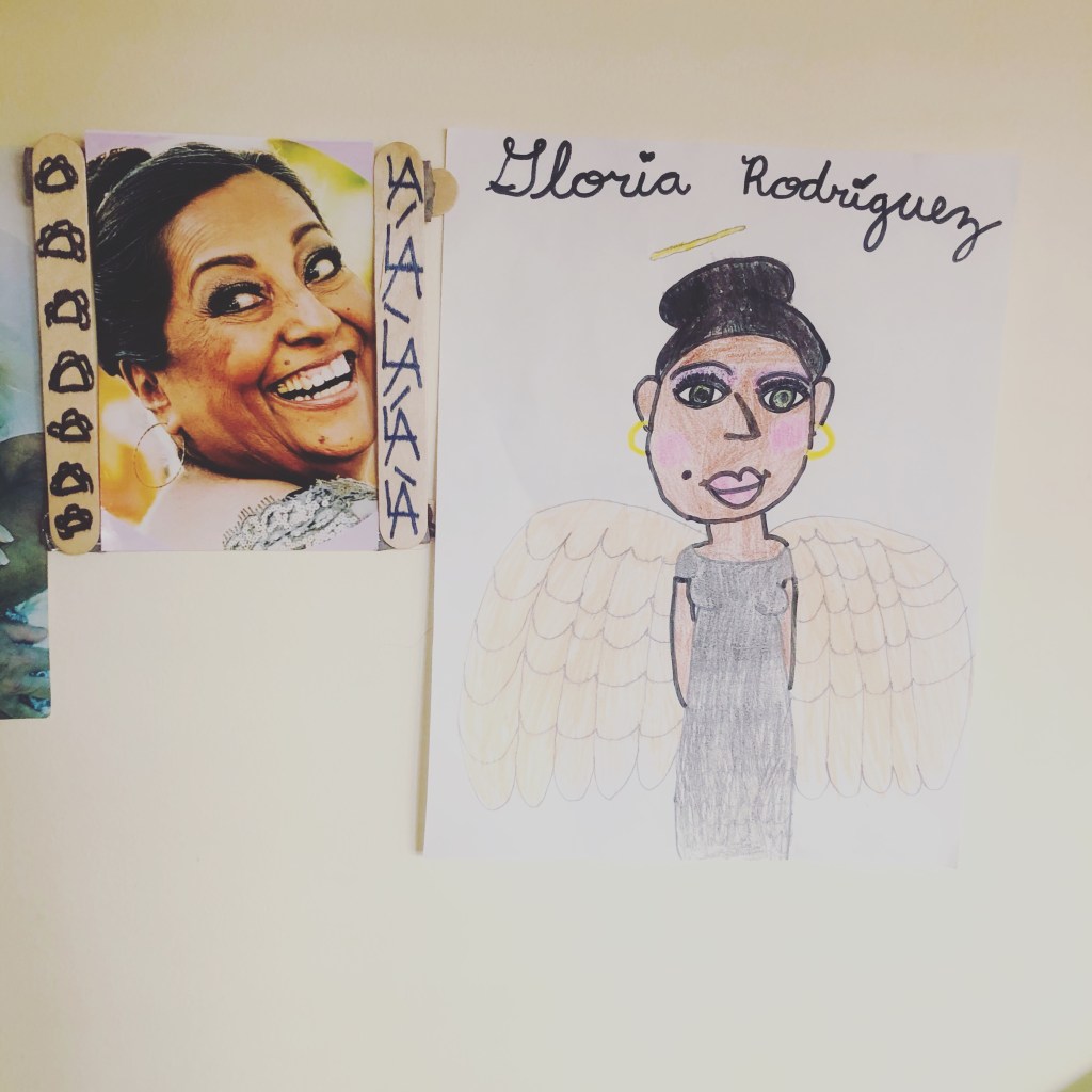Lately, our oldest has been having dreams of Grammie as a “beautiful angel”. So yesterday, she decided to draw her Grammie as such, and tape it to the wall next to her bed so she could smile at her every morning and “remember what she must look like in Heaven right now.”