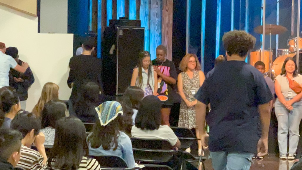 Today was D’s first day in Youth. (Check on ya girl, AKA Me, I am not okay. 😭) She is leaving on her very first missions trip this Tuesday, and the Youth team prayed over all of the kids who are going. The kids on the team got to go up to the leader who they wanted to pray over them, and guess who D made a bee line to? Joia. There were many of times that I had the pleasure of praying over Joia at that very same alter shown above. And now, today, she prayed over my baby girl at that alter.